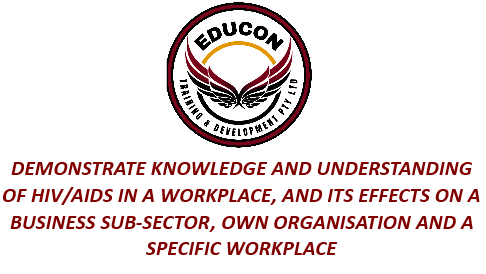 Know and understand the implications of the HIV/AIDS pandemic for society, the economy, a business sub-sector, an organisation and a specific workplace.