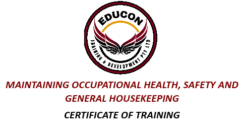 Implementing and complying with the relevant procedures, material requirements and methodologies in maintaining prescribed safety, health and environmental standards in the workplace (e.g. ensure cleanliness, report faulty equipment).